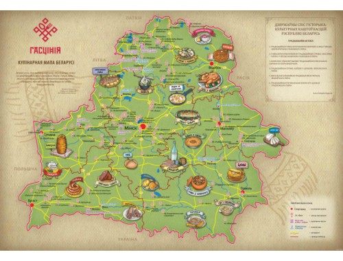 На карте обозначены блюда, характерные для регионов Беларуси, объекты и усадьбы, которые могут посетить туристы. В проект включены аутентичные рецепты, которые представители общественного объединения «Отдых в деревне» собирали на протяжении десяти лет. В том числе в этом им помогали хозяева усадеб.