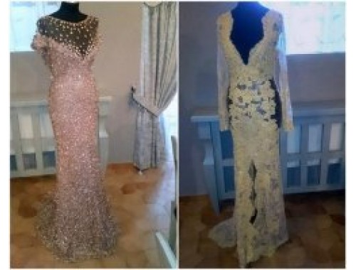 Здесь можно увидеть вечерние и свадебные наряды. Платья сшиты из тонкого шелка, декорированы ручной вышивкой, кружевом и драгоценными камнями. Одно из них — белоснежное свадебное платье, которое можно надеть не только на торжество, но и в повседневной жизни, — создано совместно с белорусским дизайнером Ольгой Виноградовой. Кроме того, все платья дополняют аксессуары белорусского модельера Апти Эзиева и ювелирные украшения одного из белорусских брендов. В следующем году в них появятся звезды и гости Каннского фестиваля. Всего на выставке представлено шестнадцать платьев.