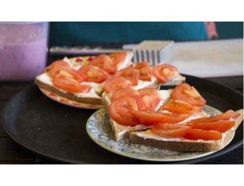 - Бутерброды из цельнозернового хлеба, с помидорами и творогом.