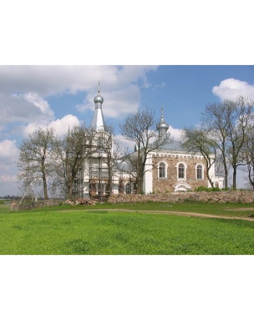 История у церкви довольно не простая. Храм был построен примерно в середине 17 века из дерева, деньги на который выделил помещик Волович. В 1842 году старый храм сгорел, и долгое время богослужения проходили в кладбищенской часовне. После на этом месте был возведен храм уже из камня и кирпича. При правлении Хрущева храм был закрыт и в его здании находился колхозный склад. В конце 19 века в здании произошел пожар, который сильно повредил здание. А уже в 90-х годах храм был возвращен Православной Церкви. На данный момент в храме ведутся реставрационные работы.